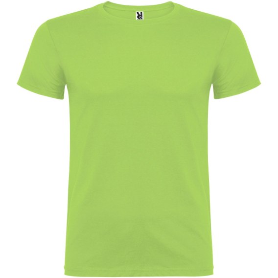 T-shirt z krótkim rękawem. Podwójna tkanina z dodatkiem elastanu przy kołnierzu. Wzmocnione, kryte szwy na karczku. Brak szwów bocznych w wersji dla dorosłych. Usuwalna metka.