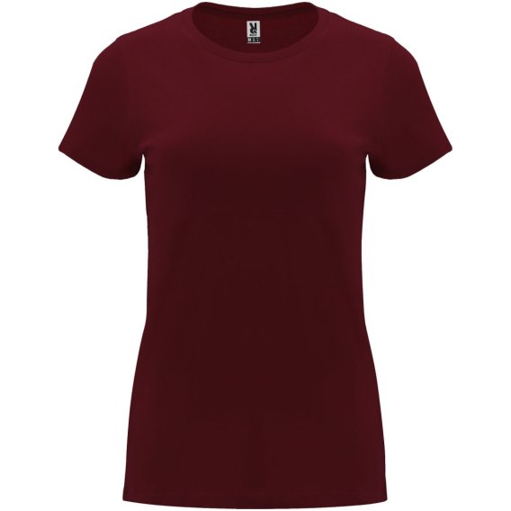 Damska dopasowana koszulka z krótkim rękawem. Okrągły prążkowany dekolt 1x1. Wzmocnione, kryte szwy na kołnierzu. Usuwalna metka.