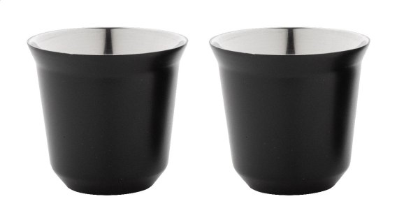 Zestaw 2 filiżanek do espresso w kształcie kapsułkek, z podwójnymi ściankami, wykonane z recyklingowanej stali nierdzewnej, 80 ml. W pudełku z papieru typu kraft.