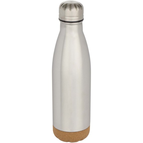 Butelka na wodę ze stali nierdzewnej, izolowana próżniowo, z detalami z korka na spodzie. Podwójna ścianka izolacyjna utrzymuje napoje ciepłe lub zimne przez kilka godzin. Zapakowana w pudełko upominkowe wykonane z kartonu z recyklingu. Pojemność: 500 ml.