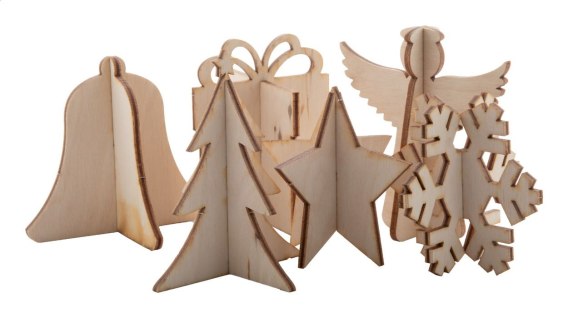 Personalizowana, papierowa karta świąteczna z dowolną grafiką po obu stronach i drewnianą ozdobą do składania. Zawiera kopertę C6. Min. zamówienie: 100 szt.