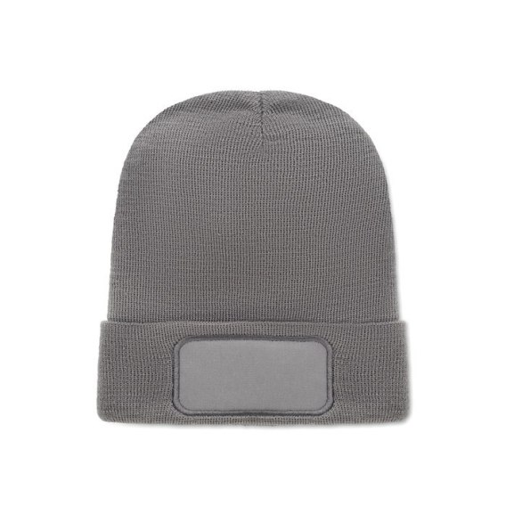 Dzianinowa czapka unisex z miękkiego, rozciągliwego poliestru RPET z mankietem i naszywką.