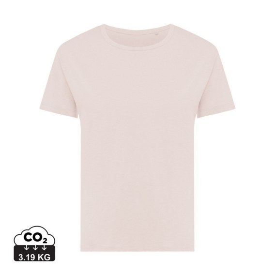 Koszulka damska, regularny krój, okrągły dekolt, krótkie rękawy, wykonana w 30% z bawełny z recyklingu i w 70% z bawełny organicznej o gramaturze 160 g/m2, posiada wbudowany znacznik AWARE™, który potwierdza wykorzystanie materiałów z recyklingu, posiada kod QR na metce, który prowadzi do cyfrowego paszportu produktu, 2% wpływów z każdego sprzedanego produktu z kolekcji Impact jest przekazywane na rzecz Water.org, ślad węglowy produktu: 3,19 kg CO2