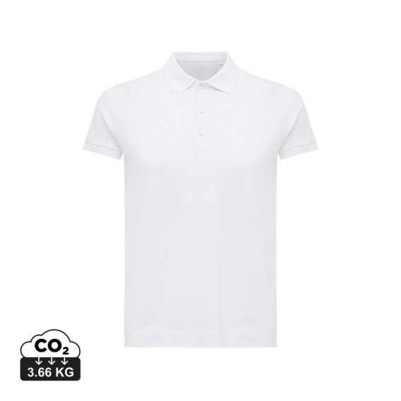 Koszulka polo, damska, zapięcie na 3 guziki, krój medium, splot Pique, krótkie rękawy, wykonana w 50% z bawełny z recyklingu i w 50% z bawełny organicznej o gramaturze 220 g/m2, bez dodatku poliestru, posiada wbudowany znacznik AWARE™, który potwierdza wykorzystanie materiałów z recyklingu, posiada kod QR na metce, który prowadzi do cyfrowego paszportu produktu, 2% wpływów z każdego sprzedanego produktu jest przekazywane na rzecz Water.org
