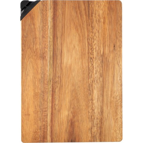 Deska do krojenia z ostrzałką w rogu umożliwiającą szybkie naostrzenie noży, przyda się do codziennego użytku w kuchni, produkt wykonany z drewna akacjowego