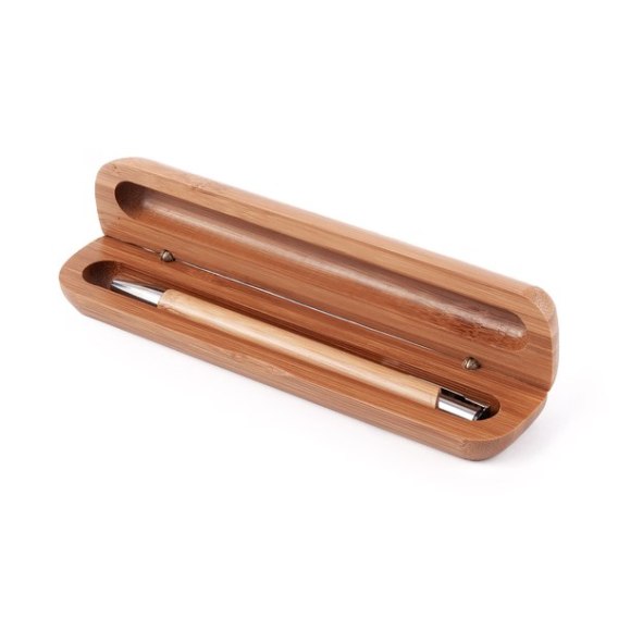 Wytworzony z dbałością o środowisko naturalne długopis z litego bambusa i metalu w bambusowym etui. Bambus jest biodegradowalny, a metal może zostać poddany recyklingowi. Wkład w kolorze niebieskim. Pakowany w upominkowe opakowanie.
