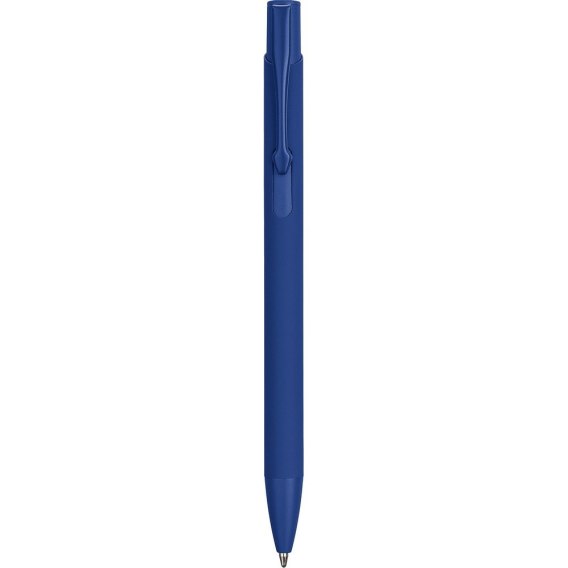 Długopis aluminiowy z recyklingu z gumowaną powłoką na korpusie, ikona aluminium z recyklingu wygrawerowana na produkcie, wkład w niebieskim kolorze, produkt wykonany z aluminium i ABS