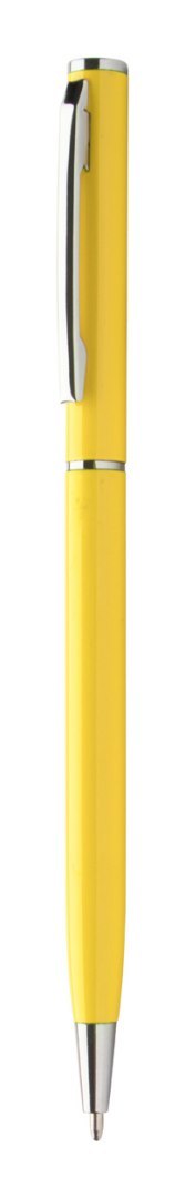 Długopis z przekręcany z aluminium z recyklingu z chromowanymi elementami. Z niebieskim wkładem.