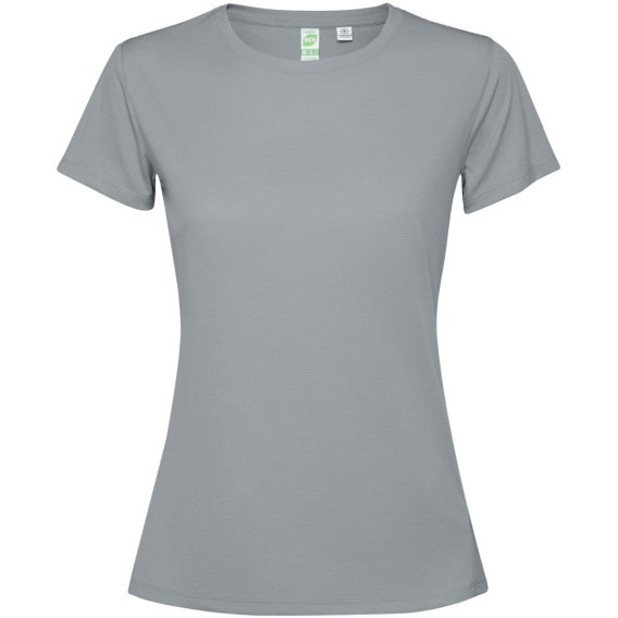 Dopasowana, techniczna koszulka z krótkim rękawem dla kobiet. Kołnierz z pasującymi kolorystycznie szwami. Tył nieco dłuższy niż przód. Szwy boczne przesunięte do przodu.