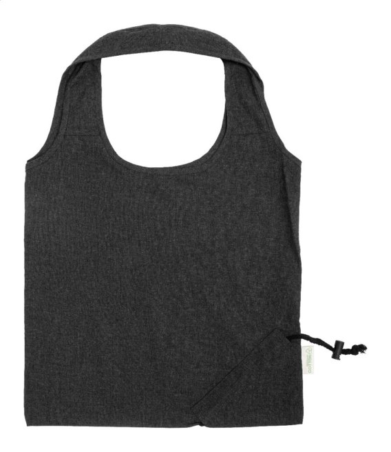 Składana torba na zakupy wykonana w 70% z bawełny pochodzącej z recyklingu i w 30% z poliestru RPET, o gramaturze 140 g/m². Z charakterystyczną metką z bawełny pochodzącej z recyklingu.