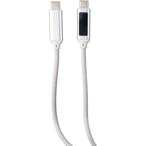 Kabel do ładowania i przesyłania danych 100W, o długości 1 metra, USB-C na USB-C, niebieska kontrolka prędkości ładowania na gnieździe, zmieści się w kieszeni, produkt wykonany z tkaniny nylonowej i aluminium