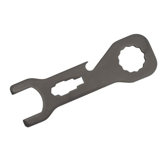 Klucz wielofunkcyjny zawiera: klucze oczkowe, płaski i otwieracz do butelek.