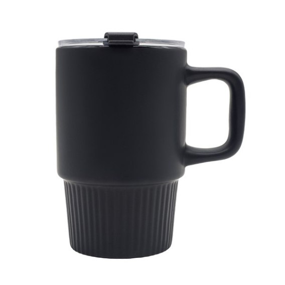 Kubek ceramiczny (440 ml) w matowym wykończeniu. Wyposażony w praktyczną, przezroczystą pokrywkę. Minimalistyczny i nowoczesny, idealny do biura i domu.