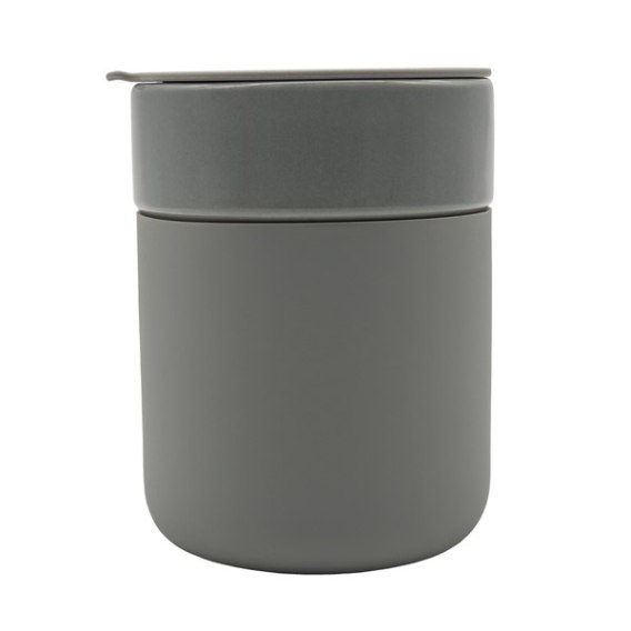 Ceramiczny kubek o pojemności 370 ml. Posiada silikonowe gładkie etui oraz pokrywkę. Minimalistyczny i funkcjonalny design.