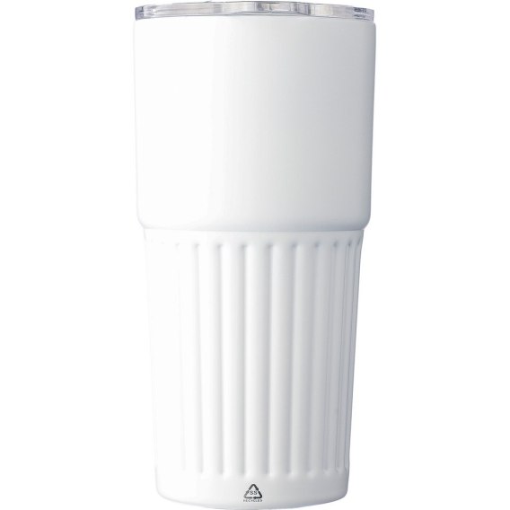 Kubek termiczny 500 ml ze stali nierdzewnej, posiada podwójne ścianki, które spowalniają oddawanie temperatury na zewnątrz, zewnętrzna część wykonana jest ze stali nierdzewnej 201, a wewnętrzna ścianka ze stali nierdzewnej 304, zamykane wieczko wykonane z AS, ikona recyklingu na produkcie, zapakowany w brązowe kartonowe pudełko, utrzymuje temperaturę napojów gorących do 15 godzin