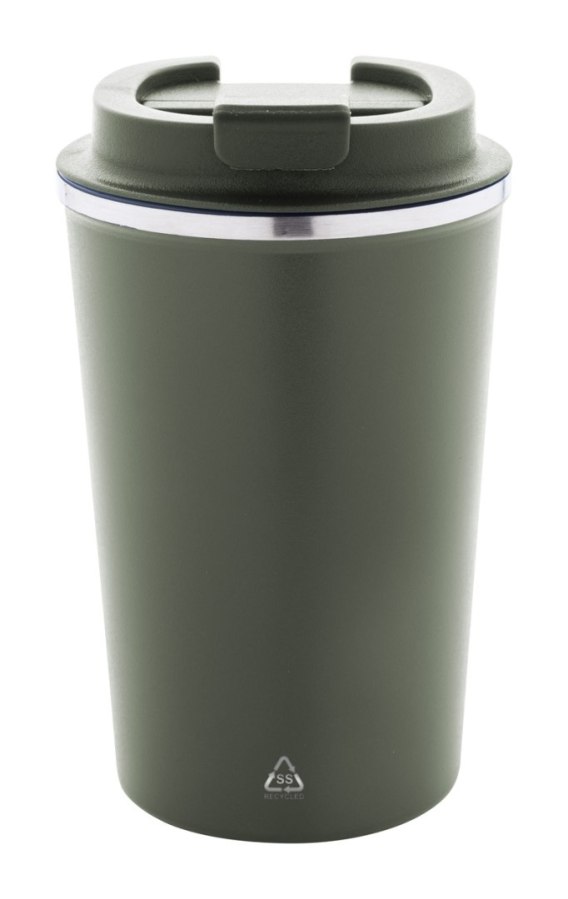 Kubek termiczny z podwójnymi ściankami, wykonany ze stali nierdzewnej z recyklingu, z pokrywką z PP. Pojemność 350 ml.