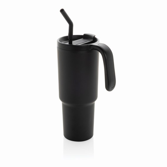 Kubek termiczny 900 ml, wykonany ze stali nierdzewnej z recyklingu, podwójne ścianki ze stali nierdzewnej z próżnią pomiędzy, zakręcane wieczko z dziubkiem i słomką, zalecane mycie ręczne