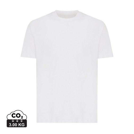 Koszulka, unisex, regularny krój, okrągły dekolt, krótkie rękawy, wykonana w 30% z bawełny z recyklingu i w 70% z bawełny organicznej o gramaturze 160 g/m2, posiada wbudowany znacznik AWARE™, który potwierdza wykorzystanie materiałów z recyklingu, posiada kod QR na metce, który prowadzi do cyfrowego paszportu produktu, 2% wpływów z każdego sprzedanego produktu z kolekcji Impact jest przekazywane na rzecz Water.org, ślad węglowy produktu: 3 kg CO2