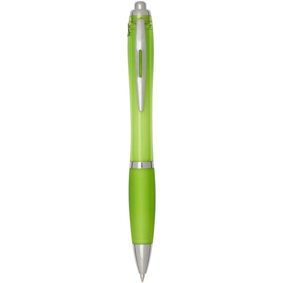 Długopis kulkowy Nash z mechanizmem klikania, wykonany z tworzyw sztucznych pochodzących z recyklingu, charakteryzuje się stylowym, zakrzywionym designem z przezroczystym, kolorowym korpusem ze srebrnymi wykończeniami i dopasowanym kolorystycznie miękkim uchwytem zapewniającym wygodę pisania. Wykonany z plastiku ABS z recyklingu z certyfikatem RCS, przyczynia się do ograniczenia zużycia surowców pierwotnych, zachowując jednocześnie trwałość. Z tyłu umieszczono logo rABS, podkreślające, że produkt wykonano z materiałów z recyklingu. Kolor tuszu: niebieski. Rozmiar końcówki: 1,0 mm. Długość linii pisania: 1000 metrów.