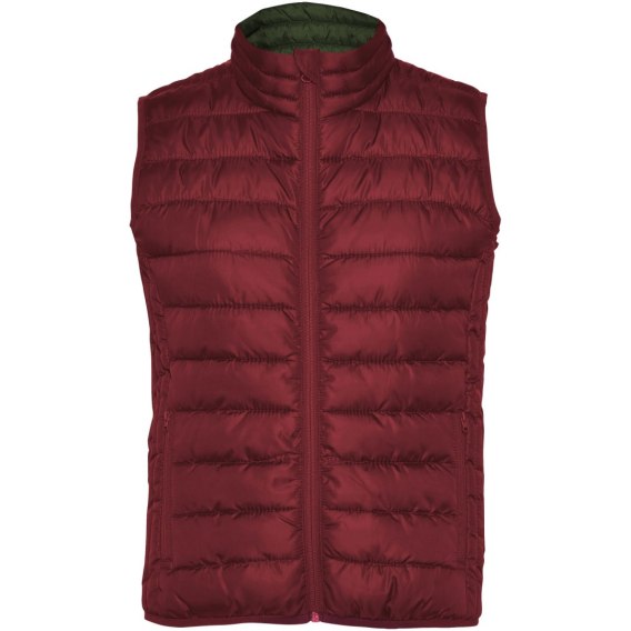 Damska kamizelka z materiału przypominającego w dotyku pierze. Dopasowane odwrócone zamki błyskawiczne. Dwie kieszenie z przodu zapinane na zamek. Kontrastowa wewnętrzna podszewka. Dopasowane elastyczne wykończenie u dołu. Lekka i składana odzież. Dopasowany krój. Wodoodporność. Model wiatroszczelny.