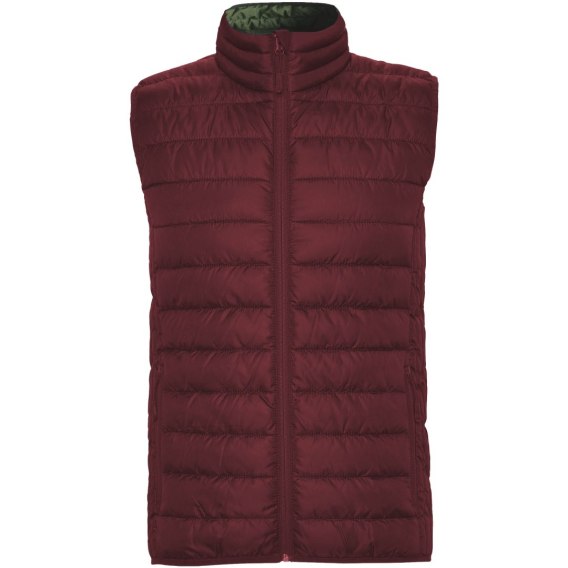 Kamizelka męska z materiału przypominającego w dotyku pierze. Dopasowane odwrócone zamki błyskawiczne. Dwie kieszenie z przodu zapinane na zamek. Kontrastowa wewnętrzna podszewka. Dopasowane elastyczne wykończenie u dołu. Lekka i składana odzież. Dopasowany krój w modelu damskim. Wodoodporność. Model wiatroszczelny.