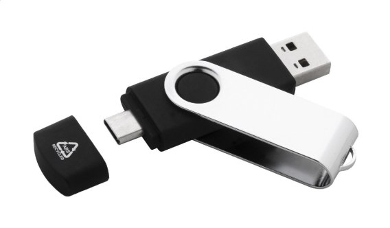 Pamięć USB Twist OTG w obudowie z recyklingowanego ABS i metalu z pamięcią 8/16/32 GB. Złącza USB i USB-C. USB 2.0.