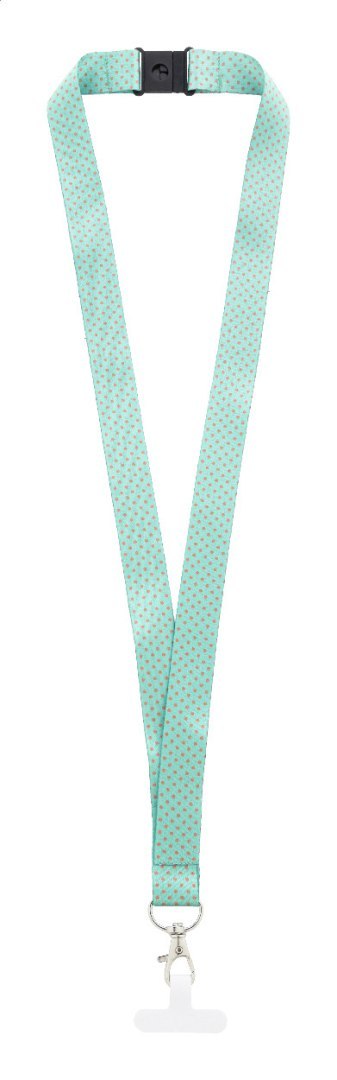 Smycz do telefonu komórkowego wykonana na zamówienie, wykonana z RPET, z metalowym karabińczykiem, klamrą zabezpieczającą i wkładką na telefon, wykonana z papieru odpornego na rozdarcia. Z grafiką nadrukowaną metodą sublimacji po obu stronach. Min. ilość: 100 szt.