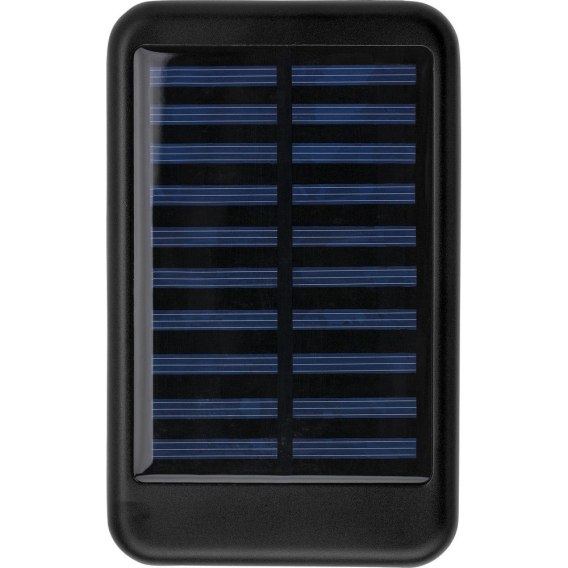 Power bank 4000 mAh, ładowarka słoneczna, niebieskie diody wskazujące poziom naładowania, port USB oraz micro USB, wejście DC 5V/1A, wyjście 5V/1A, kabel USB w komplecie