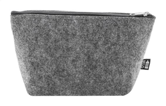 Zapinana na suwak kosmetyczka z filcu RPET. Z charakterystyczną metką RPET.