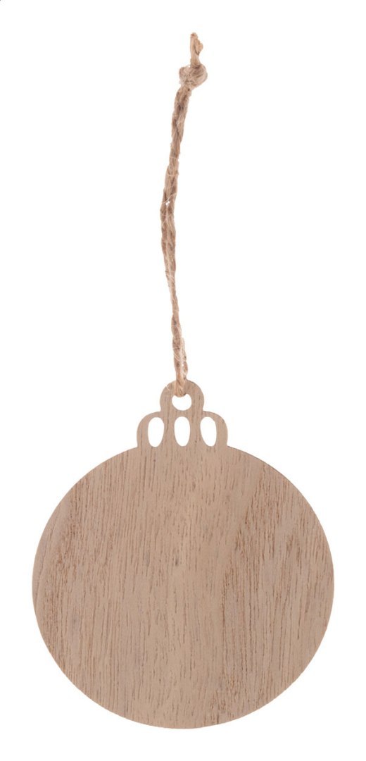 Drewniana ozdoba choinkowa ze sznurkiem konopnym.