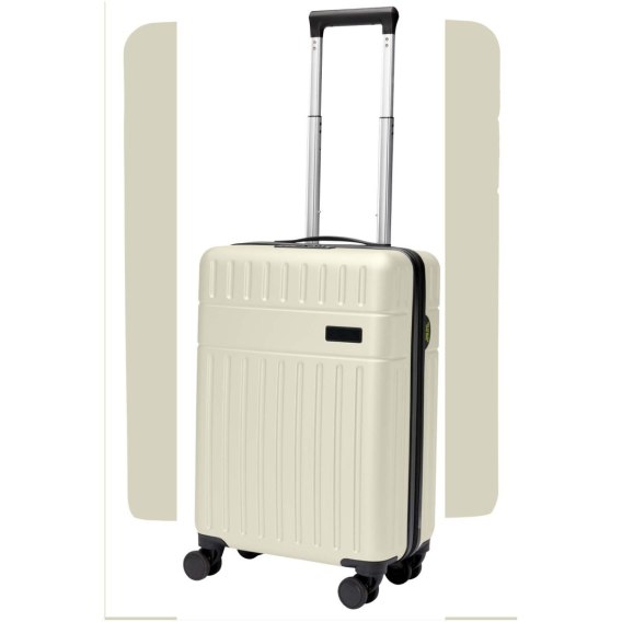 Twarda walizka na kółkach Rover o wysokości 51 cm, wyprodukowana z odpornych na uderzenia tworzyw sztucznych pochodzących z recyklingu i wyściółki RPET to produkt zarówno wysokiej jakości, jak i przyjazny dla środowiska. Posiada aluminiową ramę z podwójnymi rurkami, 4-kołowy mechanizm obrotowy 360 stopni, zintegrowany zamek szyfrowy TSA, wygodny uchwyt zapewniający komfort i wewnętrzne przegródki organizacyjne. Może być przewożona jako bagaż podręczny w większości głównych linii lotniczych. Walizka posiada certyfikat GRS, łącznie z nadrukiem, co sprawia, że jest wyborem bardziej przyjaznym dla środowiska.