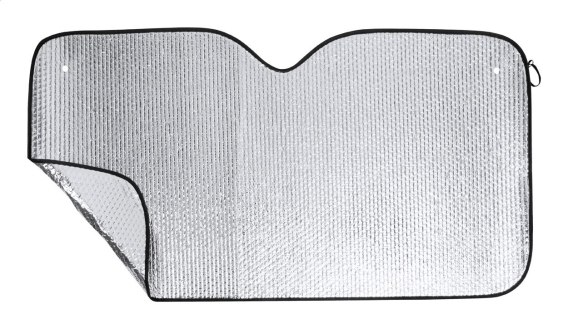 Aluminiowa osłona przeciwsłoneczna do szyb samochodowych, z elastycznymi taśmami do składania. MOQ: wielokrotność 100 szt.