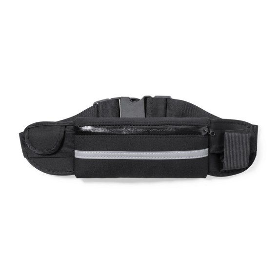 Saszetka zapinana w pasie, miejsce na butelkę (nie jest dołączona), przednia kieszeń na zamek błyskawiczny, mała kieszeń na rzep, połyskliwy pasek (do użytku promocyjnego)