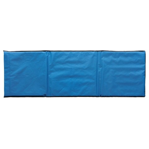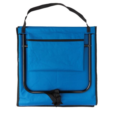Składane krzesło plażowe z oparciem, wykonane z poliestru, metalowa rama, z tyłu zapinana na zamek kieszeń na drobne akcesoria, lekkie i łatwe do złożenia, paski na ramię w komplecie, ślad węglowy produktu: 8,8 kg CO2