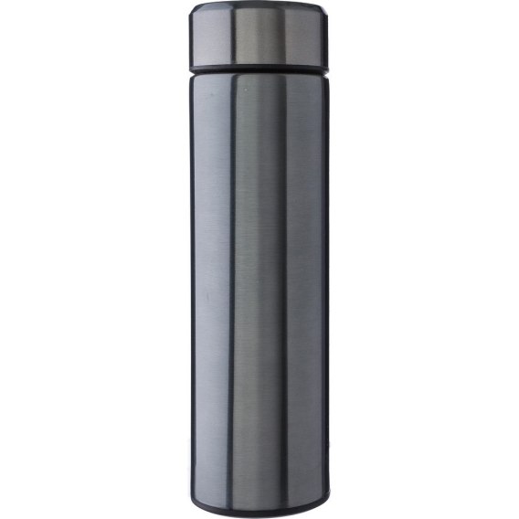 Termos 425 ml, posiada wyjmowane sitko zatrzymujące fusy, podwójne ścianki ze stali nierdzewnej z próżnią między ściankami dzięki czemu długo utrzymuje temperaturę nie oddając jej na zewnątrz, produkt zapakowany w brązowy kartonik, utrzymuje temperaturę napojów gorących do 20 godzin +leakproof