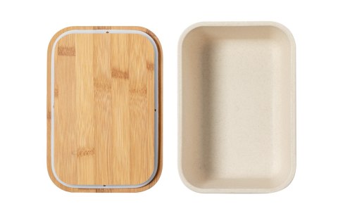 Pudełko śniadaniowe z tworzywa PP z bambusową pokrywką i elastycznym paskiem. 1000 ml.