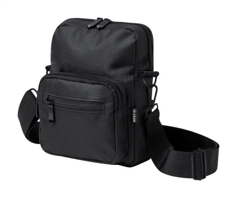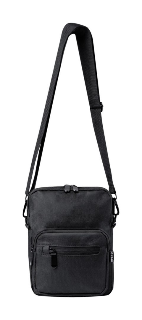 Torba na ramię RPET z przegrodami zapinanymi na zamek i regulowanym paskiem na ramię. Poliester 600D RPET z charakterystyczną metką RPET.
