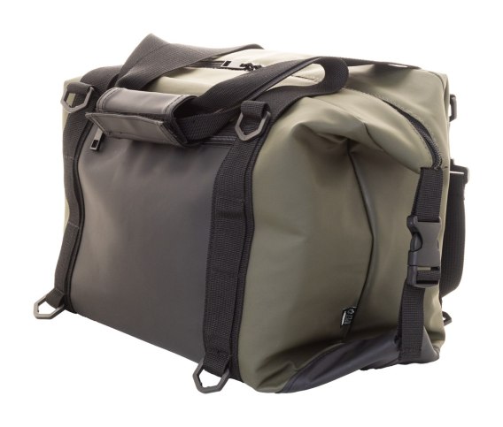 Zapinana na suwak, składana torba termoczna z miękkiej skóry PU z recyklingu z aluminiową wyściółką i kieszenią z przodu zapinaną na suwak. Z bocznymi klamrami, uchwytami i regulowanym paskiem na ramię. Torbę można złożyć na płasko, aby ułatwić przechowywanie, lub zabezpieczyć w kształcie za pomocą bocznych klamer podczas użytkowania.