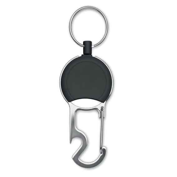 Wysuwany identyfikator z ABS z klipsem, kółkiem na klucze i otwieraczem do butelek.