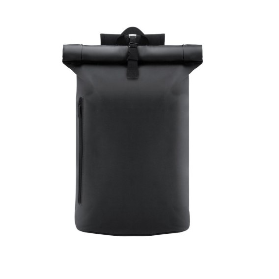 Zwijany plecak na laptopa 15", rozwijalna główna kieszeń zamykana na klamrę, która umożliwia zwiększanie pojemności plecaka oraz lepiej chroni przed czynnikami atmosferycznymi po zwinięciu, miękka przegroda na laptopa, przednia kieszeń na zamek błyskawiczny, miękki tył i regulowane paski na ramię, produkt wykonany z PU