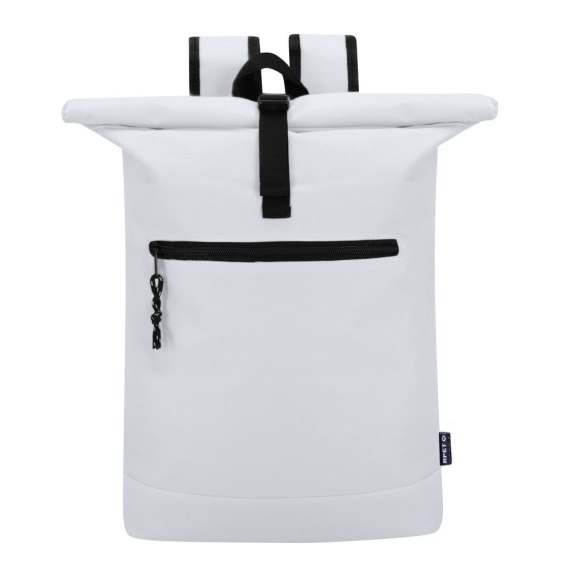 Zwijany plecak na laptopa 15", rozwijalna główna kieszeń zamykana na klamrę, która umożliwia zwiększanie pojemności plecaka oraz lepiej chroni przed czynnikami atmosferycznymi po zwinięciu, miękka przegroda na laptopa, przednia kieszeń na zamek błyskawiczny, miękki tył zwiększający komfort użytkowania i regulowane paski na ramię umożliwiające dopasowanie ich długości do własnych preferencji, produkt wykonany z poliestru 600D RPET
